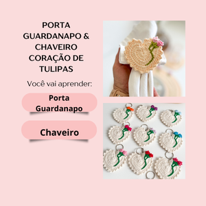 Aula Porta Guardanapo- Chaveiro Coração de Tulipas