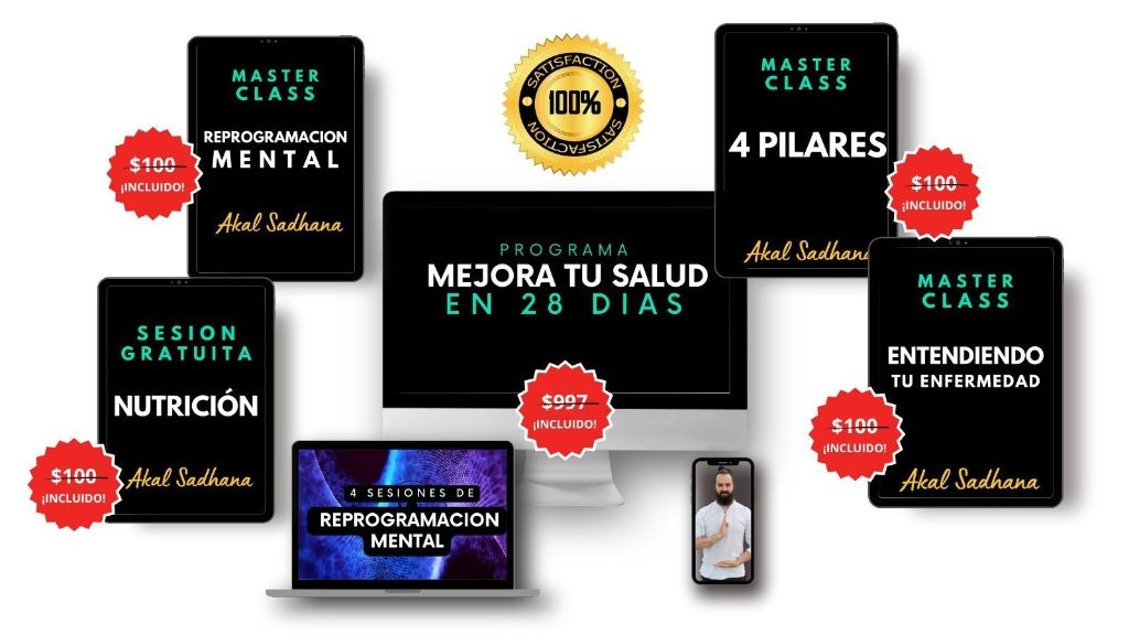 Accede a la mentoría completa de 6 meses (Valor normal 3.000 dólares) Realiza un cambio radical en tu vida, transformando tu autoestima y amor propio, salud, nutrición, felicidad, abundancia y espiritualidad, siendo acompañado por el maestro AKAL SADHANA