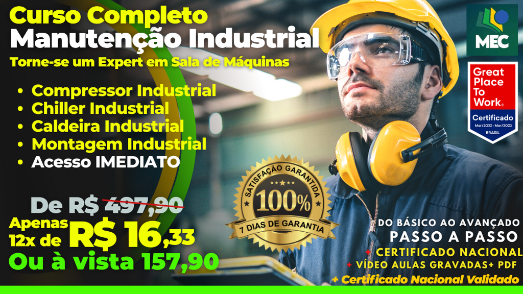 Curso Completo de Manutenção Industrial + Caldeiraria + Compressores Industriais (Video Aulas + Ebook)