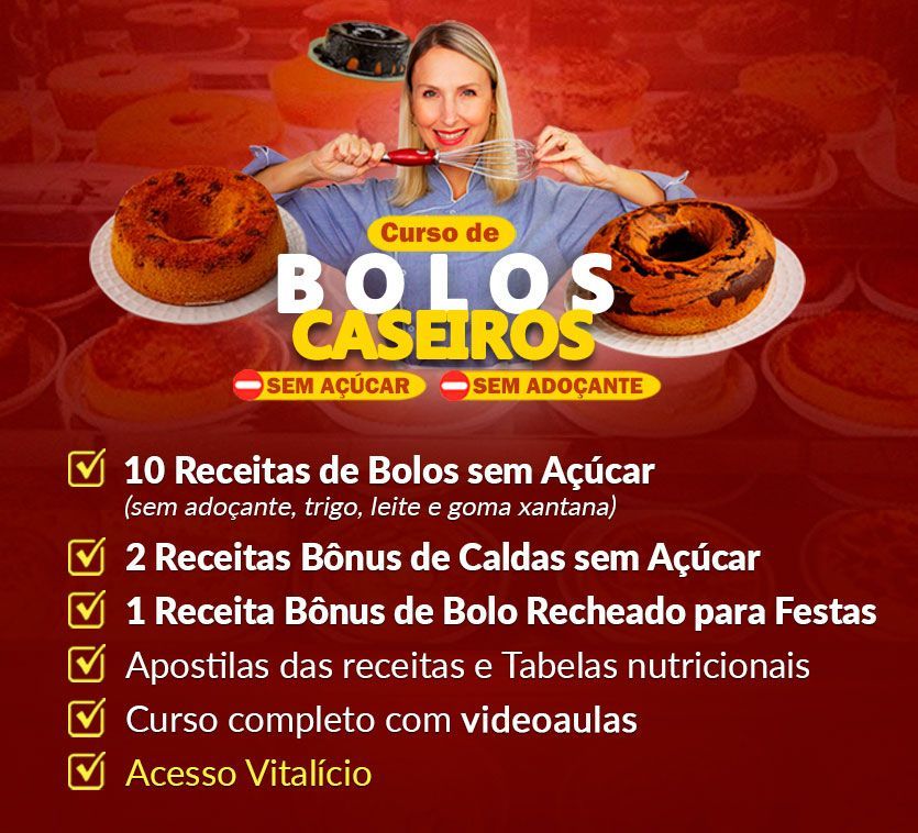 Curso de Bolos Caseiros sem Açúcar e sem Adoçante