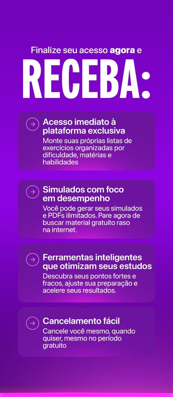 Descubra as técnicas de chute comprovadas, baseadas nos padrões do ENEM, que podem triplicar suas chances de acertar as questões mesmo quando você não sabe a resposta. Se algum tópico te incomodava porque não deu tempo de estudar e fixar, agora tá resolvido! Esse é o maior desconto que você vai encontrar pra esse produto e essa é a sua única chance de aproveitar.