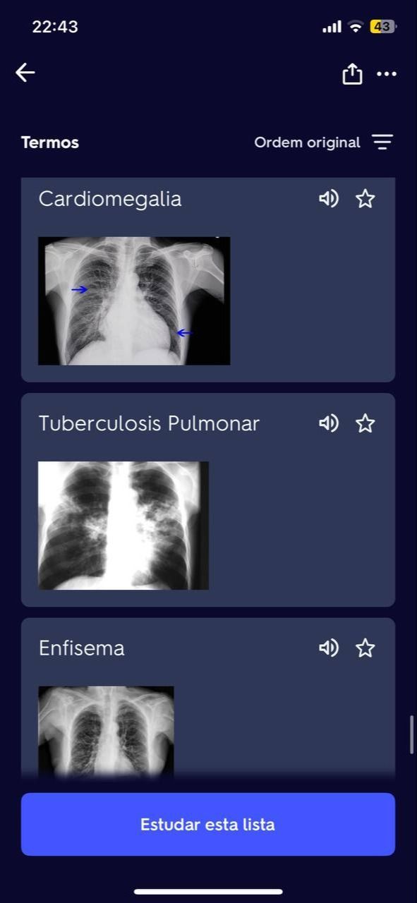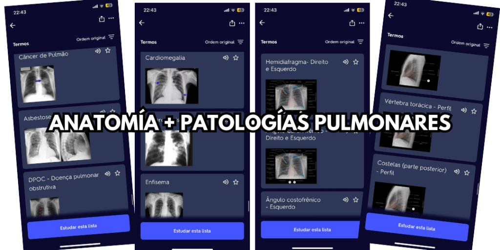 App Flashcards de Anatomia Radiográfica + Patologias Pulmonares
