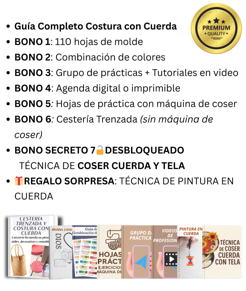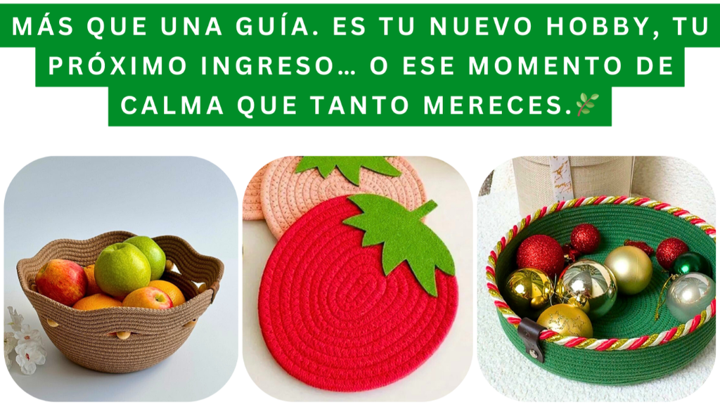 Guía Completo Costura con cuerda y cestería trenzada + Bonos exclusivos. Convierte estrés en calma creando piezas útiles, decorativas y rentables.