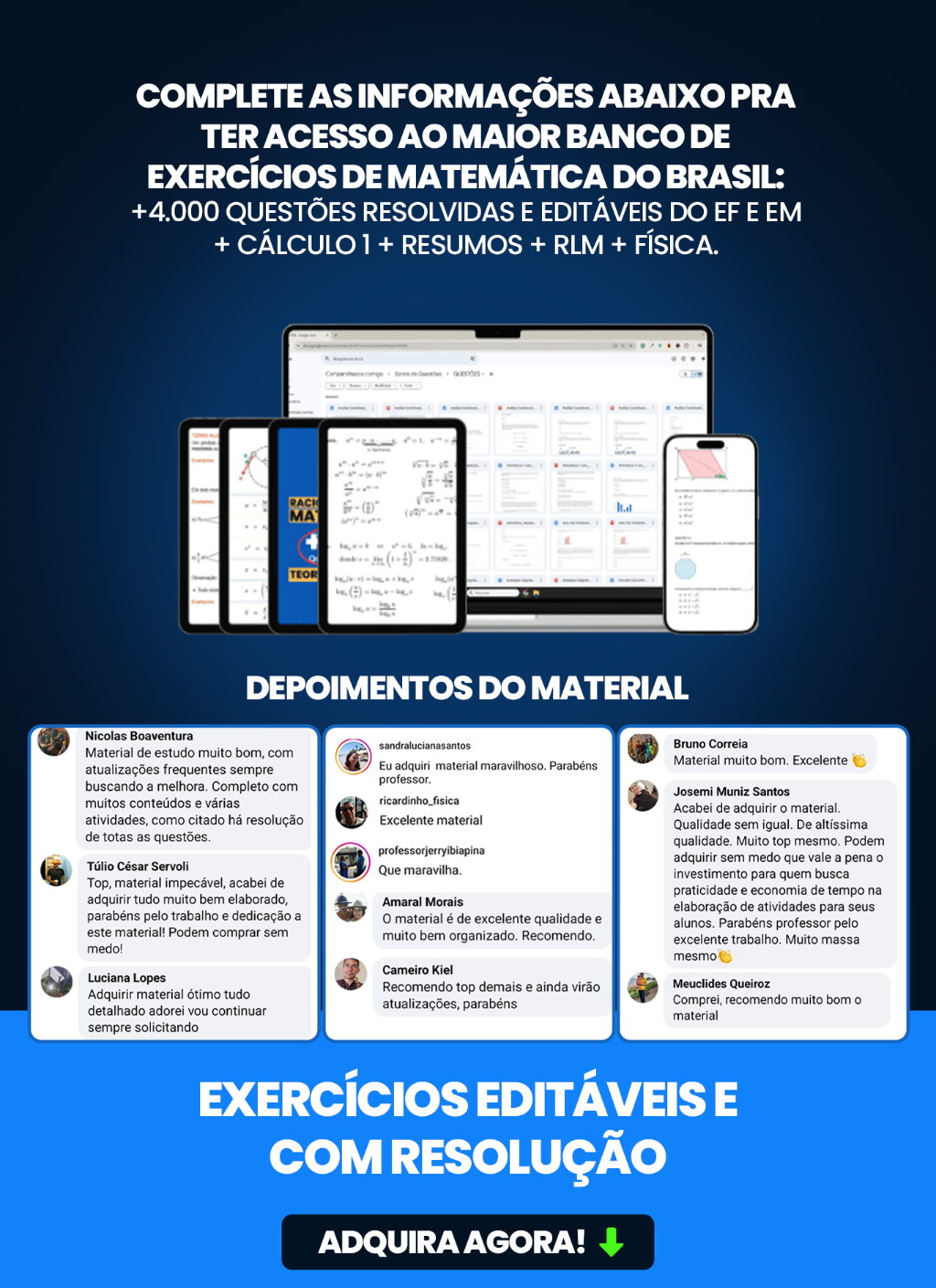 ⏰ Poupe tempo na preparação das suas aulas! Tenha um Banco de Provas de Matemática completo — com gabarito e 100% editável. 💡 Conteúdo atualizado com novas provas regularmente!