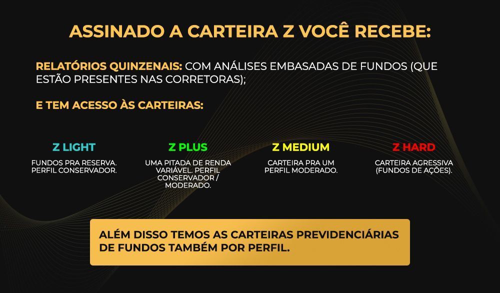 Você vai conhecer as Carteiras Z LIGHT, Z PLUS, Z MEDIUM e Z HARD e as suas alterações ao longo do tempo, e, a partir daí, poderá montar a sua carteira.