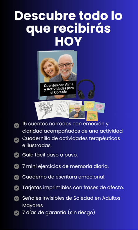 10 rutinas suaves y divertidas que combinan movimiento y pensamiento para mejorar la memoria, el equilibrio, el ánimo y la confianza. ✅ Ejercicios sin aparatos, seguros y fáciles de hacer en casa. ✅ Diseñados para estimular el cuerpo y el cerebro al mismo tiempo. ✅ Perfectos para hacer solos o acompañados, en cualquier momento del día. 🕒 Solo disponible junto con esta compra. Una herramienta ideal para mantener la mente activa y el corazón alegre cada día.