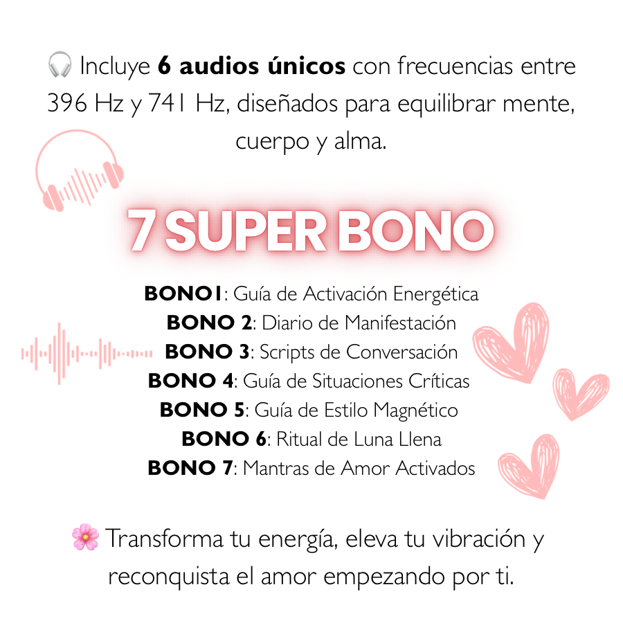 💖 Pack Exclusivo 3 en 1 – Transformación Femenina Activa tu poder interior con Frecuencias de Sanación y Serenidad, Mensajes que Reconquistan y Vibración del Amor. Tres herramientas únicas para elevar tu energía, sanar tu corazón y atraer el amor y la paz que mereces. ✨ ¡Aprovecha el precio especial y transforma tu vibración desde hoy!
