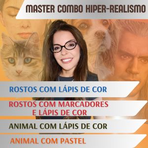 Master Combo - Hiper-Realismo de rostos com Lápis de Cor + Rostos com Marcadores e Lápis de Cor + Animal com Lápis de Cor + Animal com Pastel
