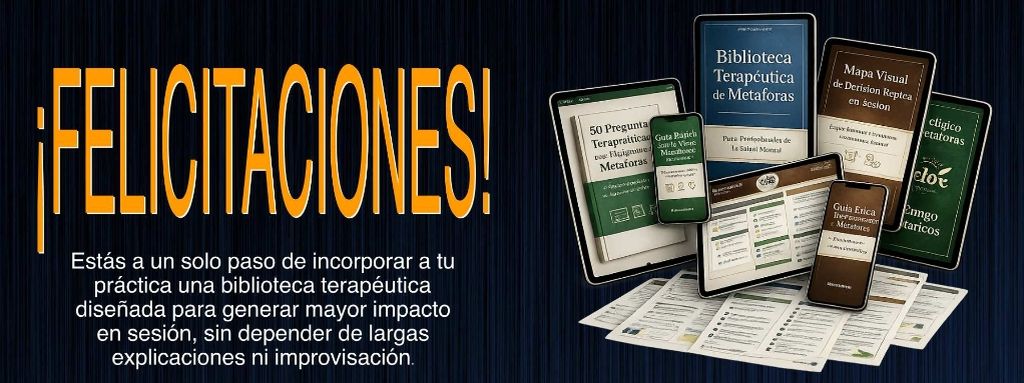 ¿Te has quedado pensando en plena sesión: “Sé que una metáfora ayudaría… pero ¿cuál uso ahora?” Ese segundo de duda rompe el ritmo, te hace perder seguridad y enfría la intervención. 👉 Este sistema existe para eliminar esa duda.