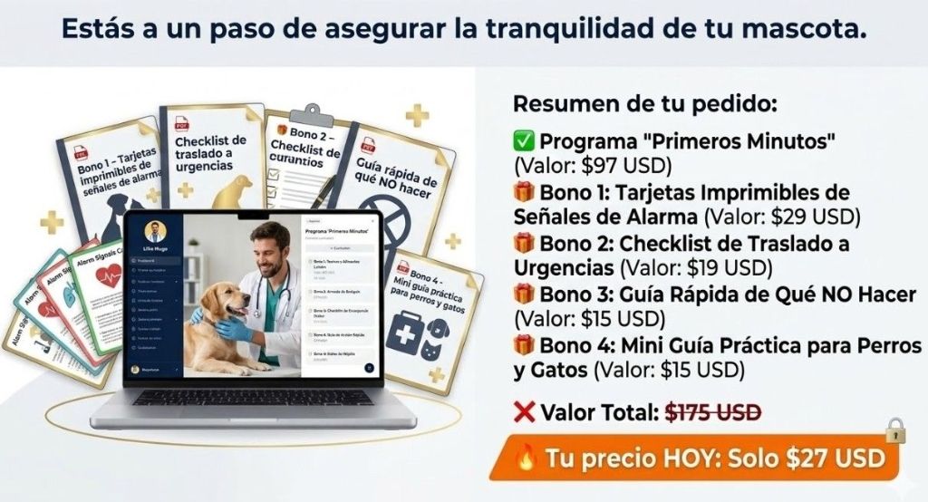 "Pensé que el curso usaría términos médicos complicados, pero el método de Hugo es súper claro y directo al grano. Ahora sé exactamente cómo reaccionar sin entrar en pánico. 100% recomendado para cualquier dueño."