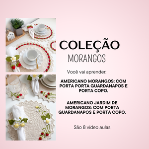 Coleção Morangos- Americano Morangos, Americano Jardim de Morangos, 4 Porta Guardanapos e 2 Porta Copos
