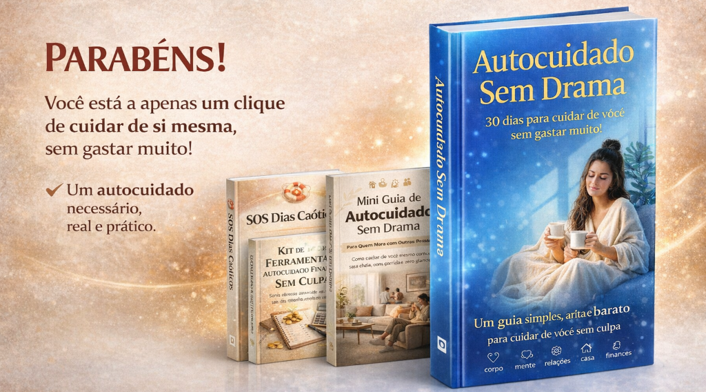 Criado para quem vive cansado, com pouco tempo e muita cobrança — e não para uma rotina perfeita. Em vez de promessas mirabolantes, ele te mostra como cuidar de corpo, mente, relações, casa e finanças com ações simples, realistas e possíveis hoje, com a vida que você tem.