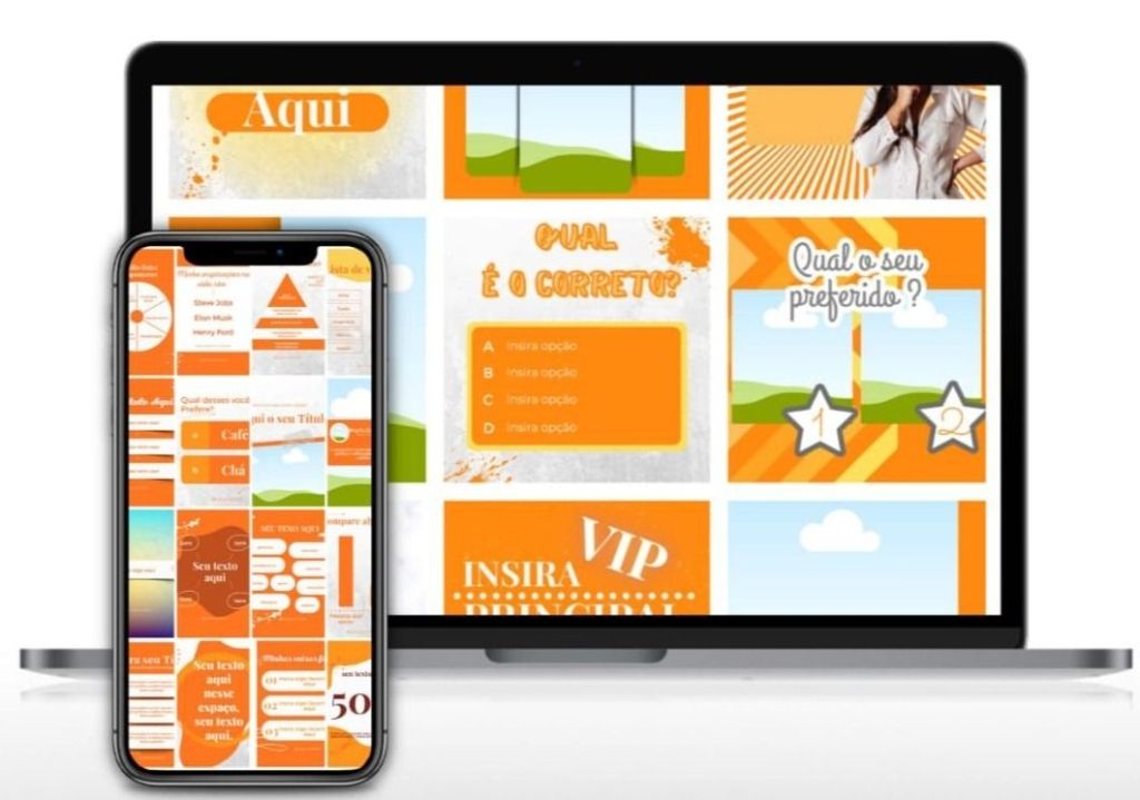 Neles você poderá alterar: fonte, cor, imagens, textos e elementos. Deixando assim ainda mais fácil para exibir a personalidade da sua MARCA!