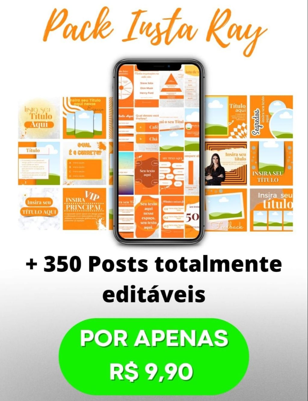 São + de 350 posts TOTALMENTE EDITÁVEIS para deixar seu Perfil no Instagram ainda mais profissional e DESTACAR-SE DA CONCORRÊNCIA.