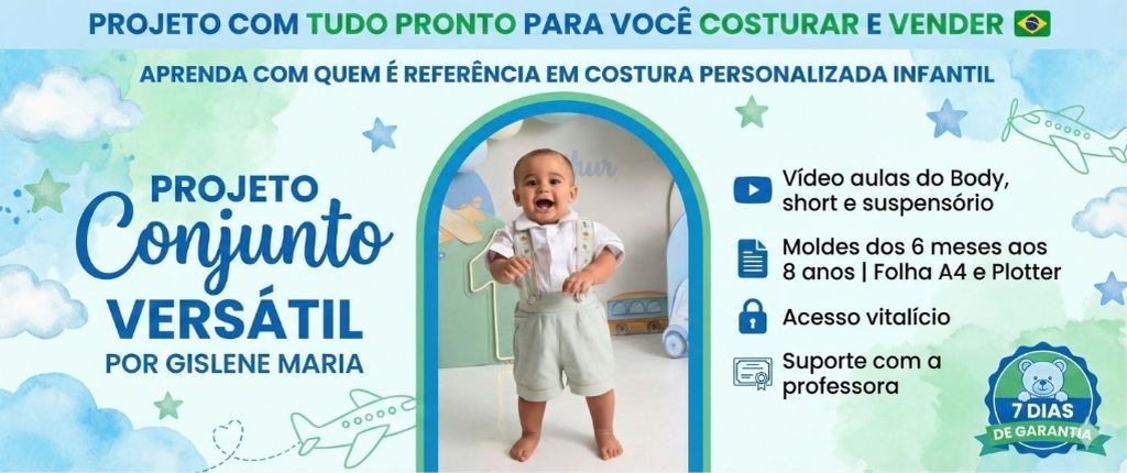 Tenha acesso vitalício ao Projeto Conjunto Versátil com tudo pronto para você costurar e vender mesmo sendo iniciante. (Libere seu acesso agora com mais de 70% de DESCONTO - de R$347 por apenas R$97)