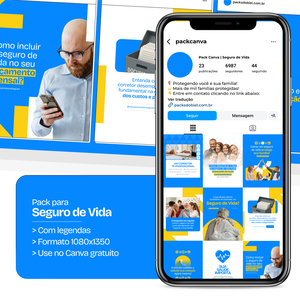 Pack Canva - Seguro de Vida | Posts com conteúdos nichados e editáveis para perfil do Instagram e Redes Sociais
