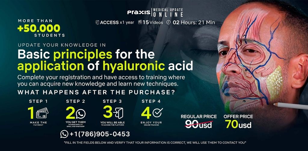 Update yourself on Full Face with Hyaluronic Acid! We will conduct a three-dimensional tour of the face from the bone structure to the skin, analyzing facial anatomy in a practical and understandable way. Learn the order in which you should approach your patients when performing a Full Face treatment, so that you can achieve better results with less application of Hyaluronic Acid. You will find different application techniques according to the area to be treated, both with a cannula and with a n