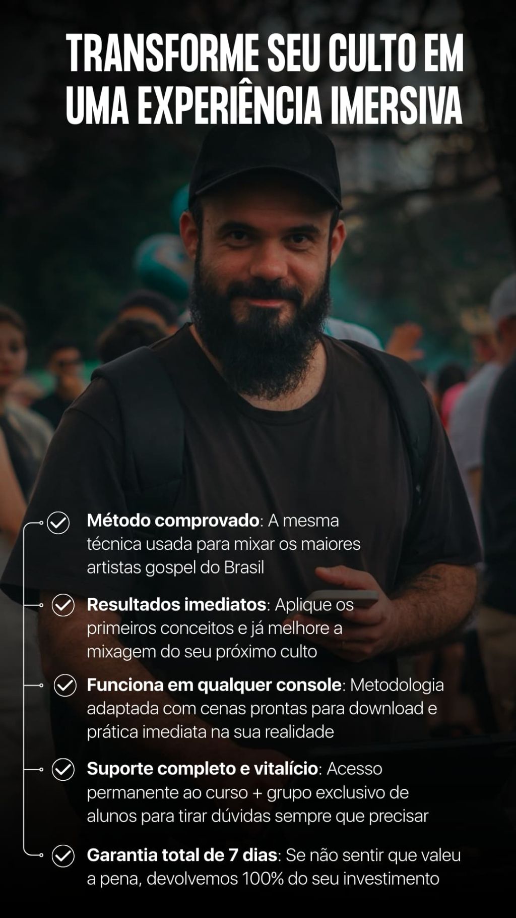 Sim. O curso é desenvolvido para ser prático e acessível, com passos claros e diretos. A metodologia ABCD simplifica as decisões que você precisa tomar durante o culto, focando em "o que ajustar, quando e por quê", sem jargões técnicos desnecessários. Se você já tem conhecimento básico de mixagem, conseguirá acompanhar perfeitamente.