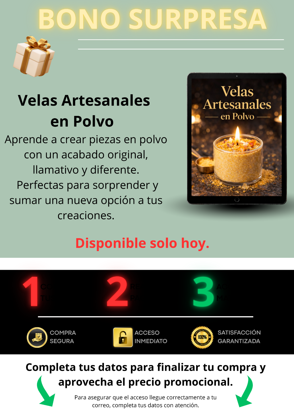 ¡Haz que tus velas destaquen de verdad! 🌿🕯️ Con “Aromas Revelados” descubrirás cómo combinar esencias de forma correcta para crear velas terapéuticas con aromas envolventes, más profesionales y mucho más atractivas para tus clientas. ✨ Aprende a crear mezclas que emocionan ✨ Dale más valor a cada vela ✨ Diferénciate con aromas únicos y memorables ✨ Convierte una vela linda en una experiencia irresistible 💛 Es uno de los extras favoritos de quienes quieren que sus velas se vean más profesio