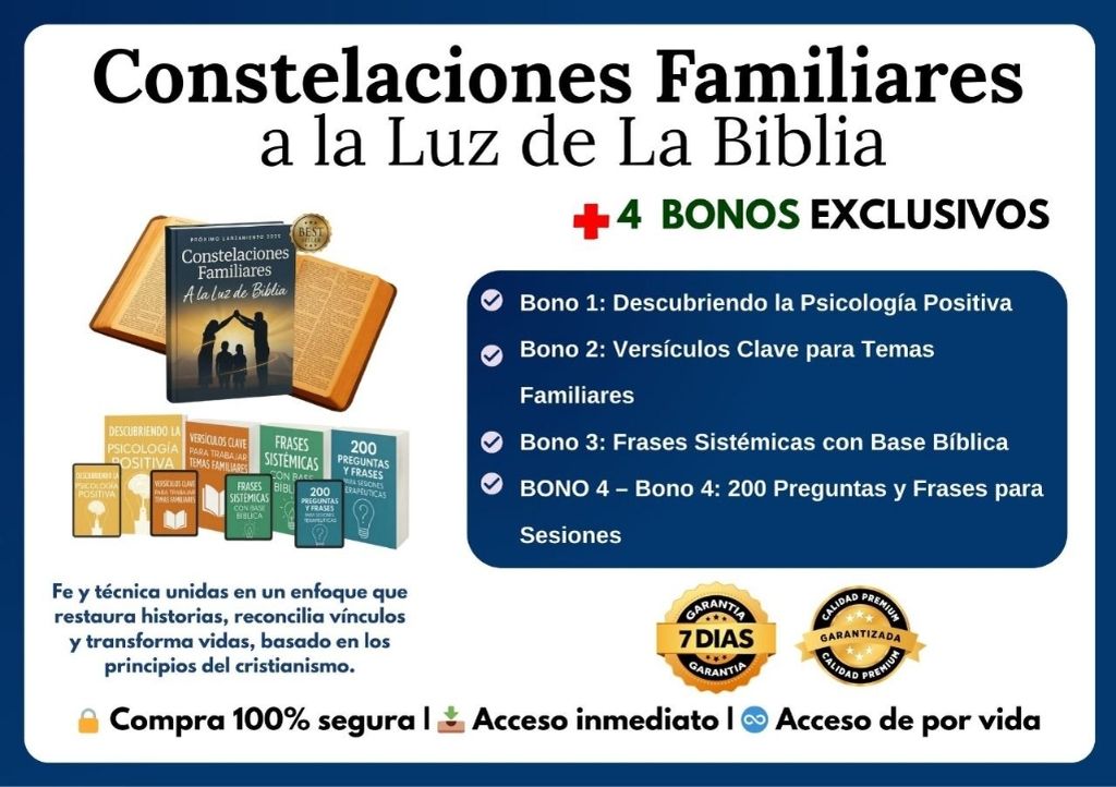 12 guiones listos para usar en sesiones individuales o talleres, con inicio, desarrollo y cierre. Cada uno centrado en un tema como: 🧠 Ansiedad, miedo, culpa, perdón, misión de vida, rechazo, honra a los padres. Incluye instrucciones, preguntas, versículos, guía y visualización opcional. (Esta oferta solo la verás en esta página)