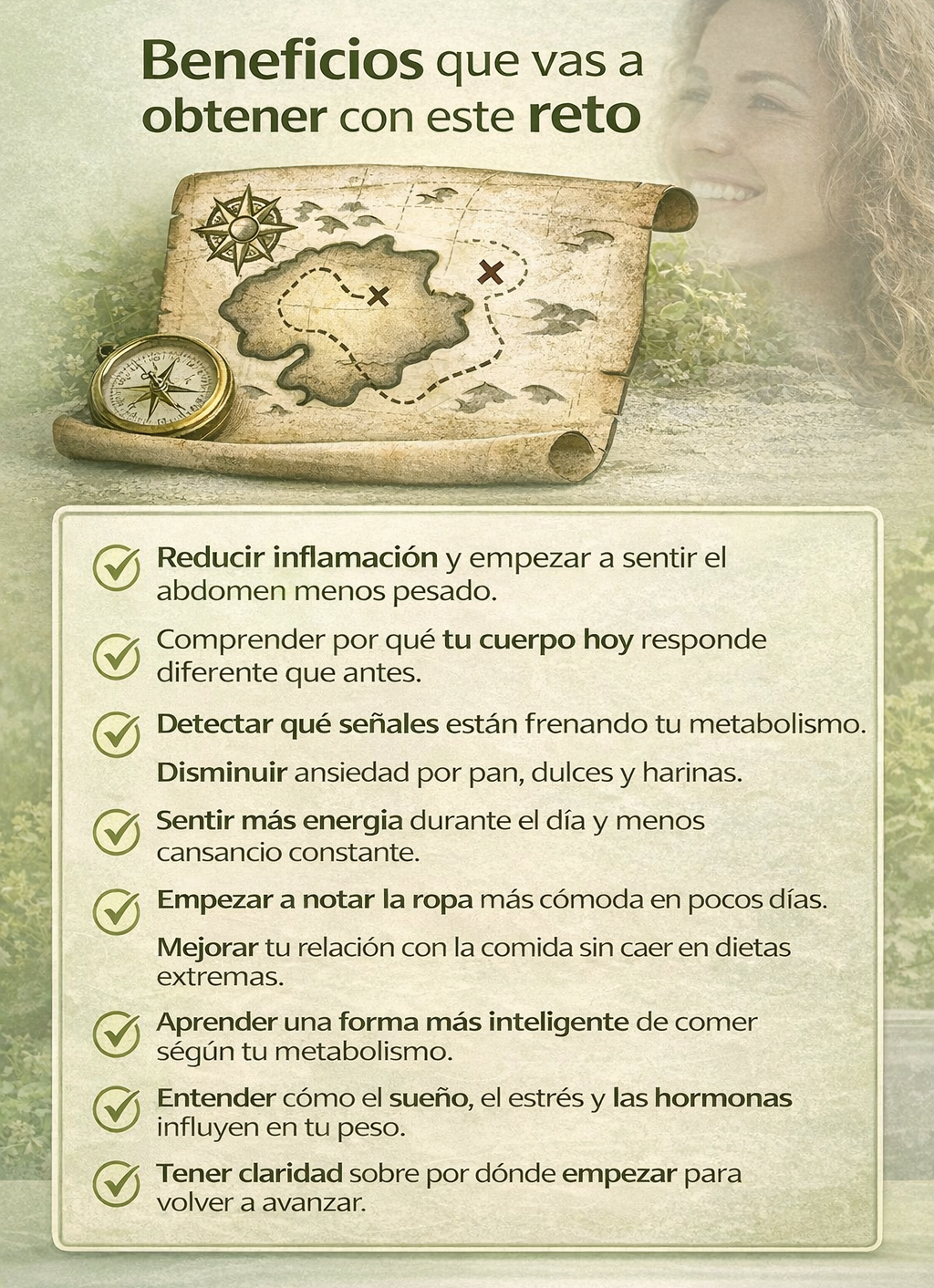 Acompañamiento por 7 días en grupo de whatsapp + mapa metabólico + clases en vivo + resultados sostenibles