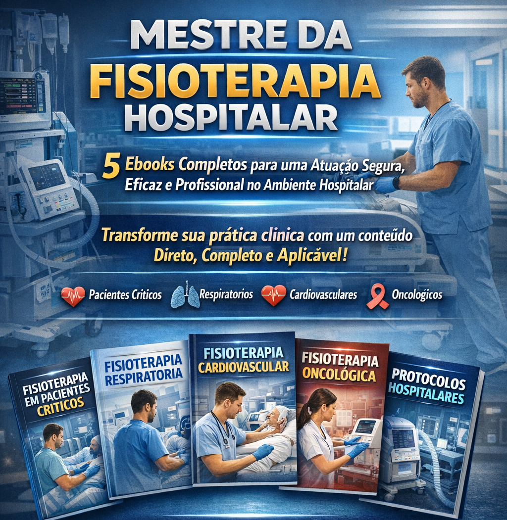 Transforme sua prática clínica com um conteúdo direto, completo e aplicável, cobrindo desde os fundamentos da fisioterapia hospitalar até protocolos específicos para pacientes críticos, respiratórios, cardiovasculares, oncológicos e muito mais.