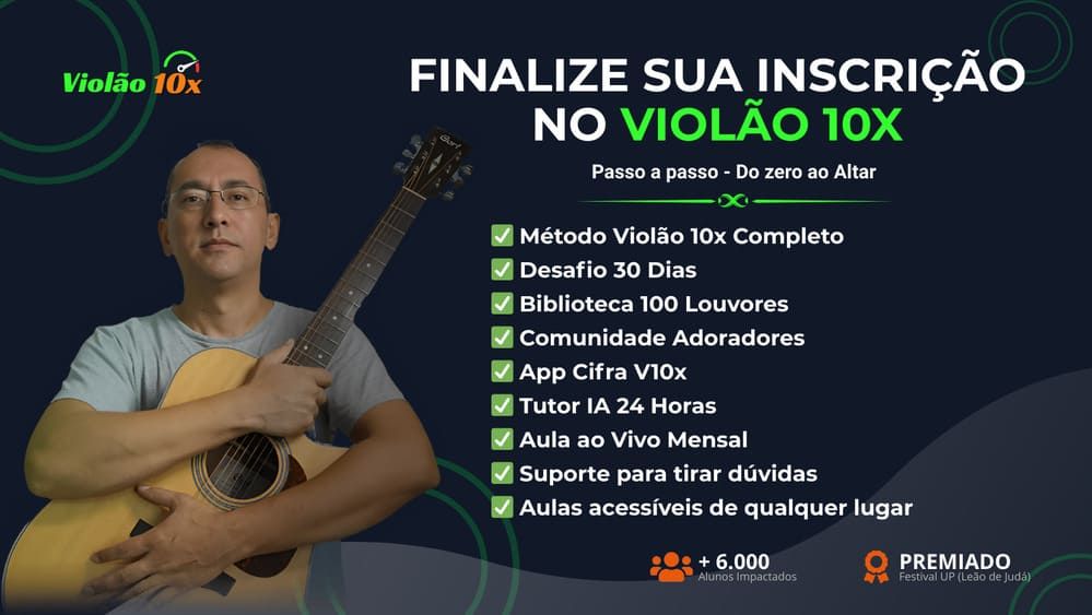Turbine seu aprendizado! Adicione o Volume 2 do Ebook Cifras Simplificadas com +100 louvores COMPLETAMENTE NOVOS (além do Vol. 1 que você já ganha). Mais músicas para praticar o método Violão 10x e nunca ficar sem opção!