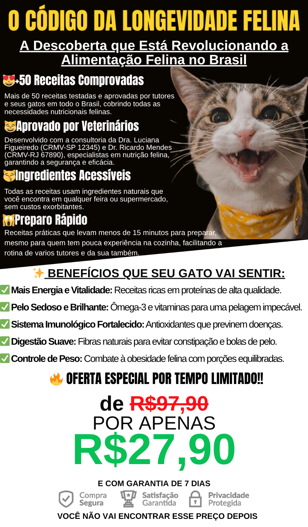Garanta agora o Código da Longevidade Felina com acesso vitalício e receba todas as atualizações futuras sem custo