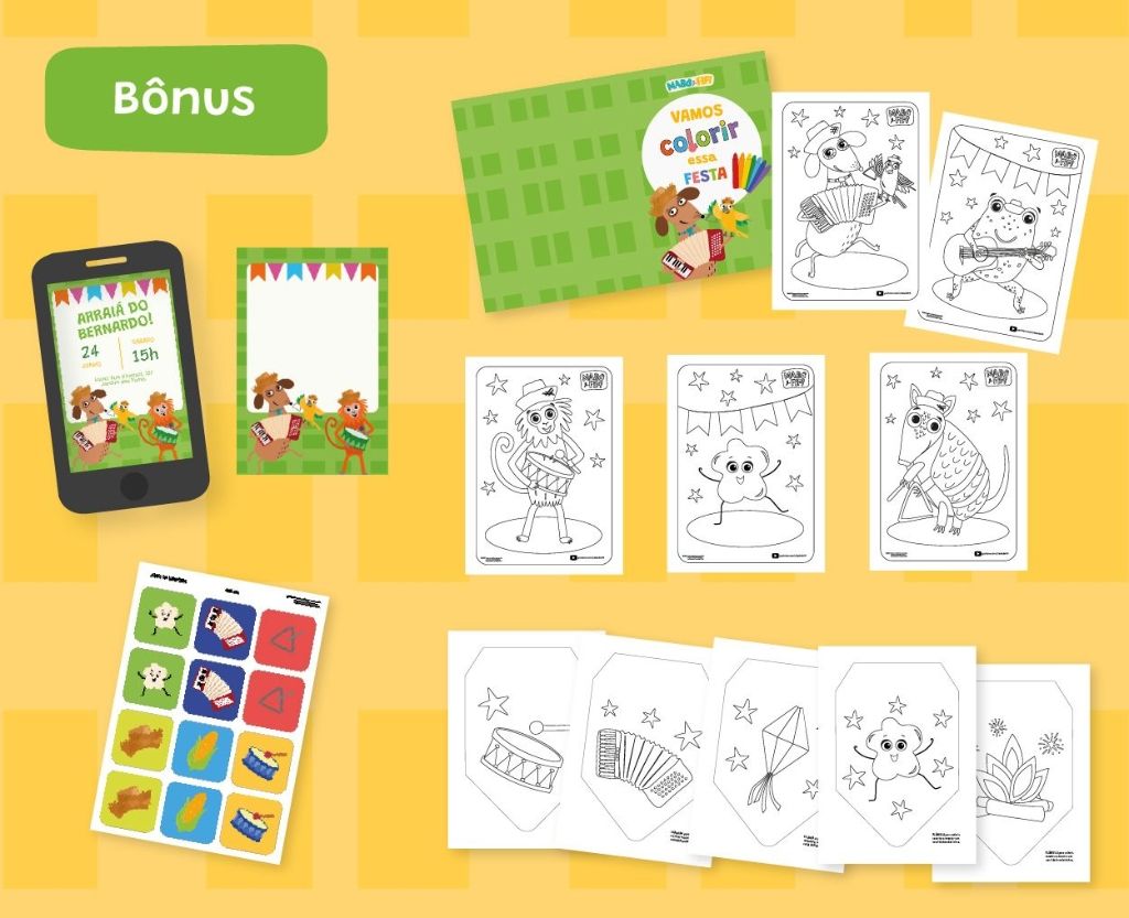 Não pode faltar bandeirinhas coloridas, comida boa, muita música, dança e brincadeiras!