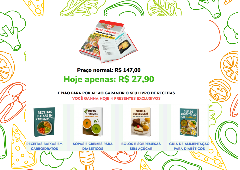 Receitas deliciosas de ✅saladas refrescantes, detox ✅Salada proteicas ✅Salada mediterrâneas ✅ 35 molhos incríveis para variar no sabor! Tudo sem glúten, com versões veganas e low carb. De R$ 87 por apenas R$ 12,90: l eve mais saúde e praticidade para suas refeições!