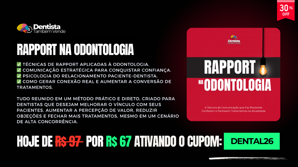 🧠 Aprenda os estímulos psicológicos que ativam a mente do cliente. 📘 No eBook Gatilhos Mentais na Odontologia, você aprende a usar: ✅ Gatilhos que aumentam a percepção de valor. ✅ Técnicas para reduzir objeções e indecisão. ✅ Estratégias para fechar mais tratamentos sem pressão. 👇 Adicione agora por apenas R$ 37,00