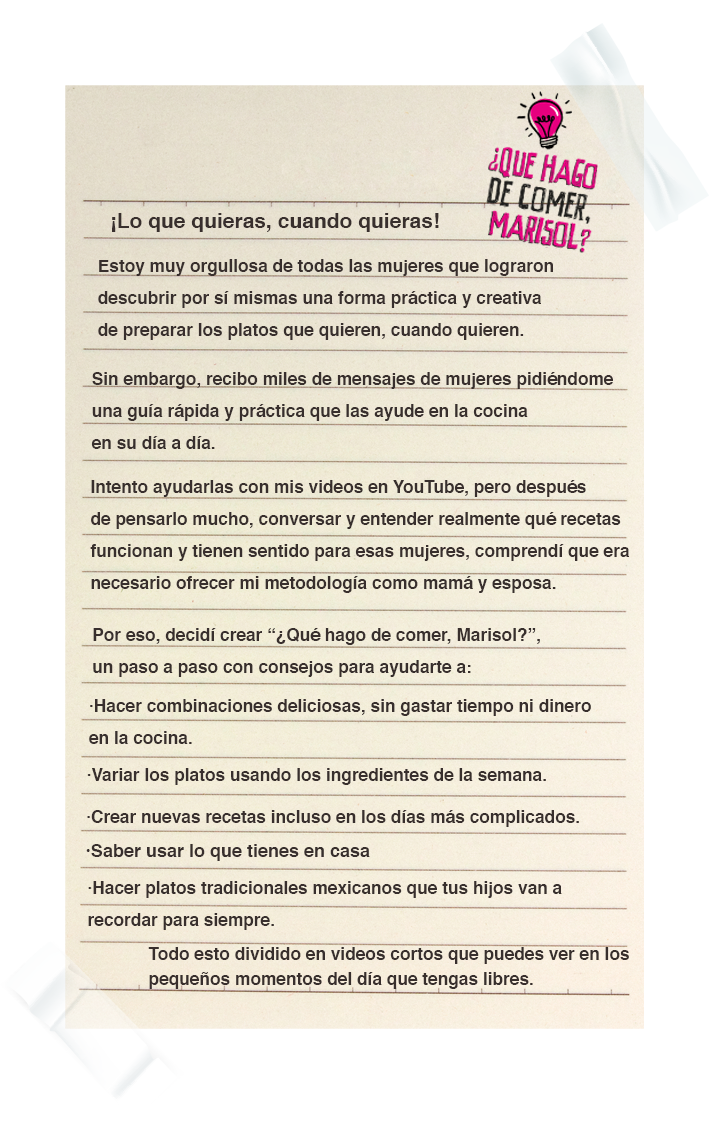 "Marisolpink fue la motivación para crear mi propio negocio de comida; porque hace ver las recetas como algo sumamente sencillo y los resultados son deliciosos. "