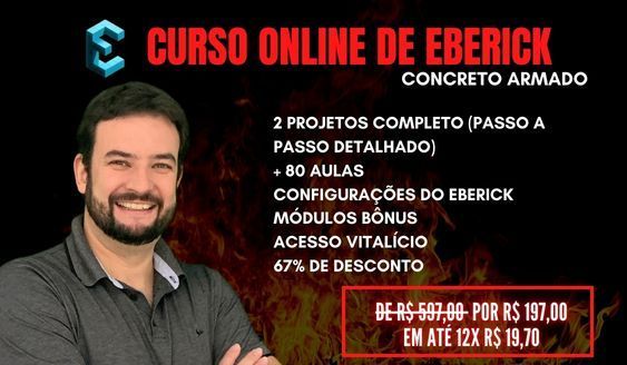 Curso de Eberick - 02 projetos completos + 80 aulas + Acesso Vitalício (67% de desconto) - De R$ 597 por 197,00