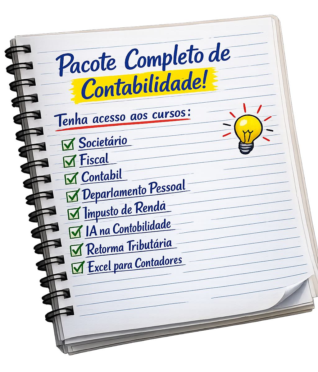 Acesso vitalício aos cursos Societário, Fiscal, Contábil, Departamento Pessoal, Importo de Renda, Reforma Tributária, Excel para Contadores, IA na Contabilidade e de bônus o Acervo Contábil.