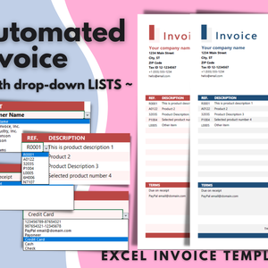 Automated Excel Invoice Template with Database and Drop-down Lists