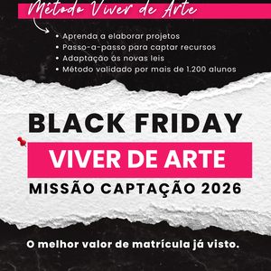 Missão Captação 2026 — Black Friday para quem quer viver da própria arte Combo: Viver de Arte + WS de Captação + WS de Prestação de Contas + Kit Viver de Arte