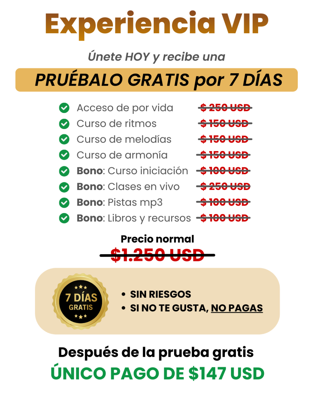 Tienes 7 días gratis para probarlo. Si decides quedarte el precio de $147 USD es un PAGO ÚNICO. Una vez realizado, tienes acceso al curso y a sus actualizaciones para toda la vida. No te cobraremos nada más en el futuro por el contenido del curso base.