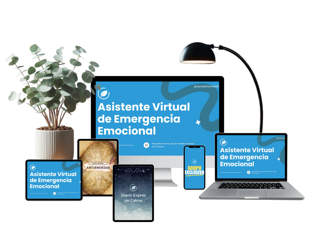 Recupera la calma y la paz mental en menos de 5 minutos con tu propio asistente emocional para crisis de ansiedad, sin terapias interminables ni técnicas confusas.