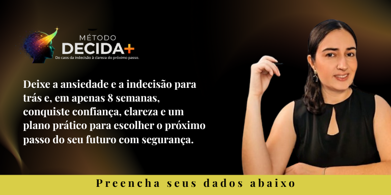 A Mentoria Decida+ é um programa individual que transforma indecisão e ansiedade em clareza, autoconfiança e ação prática.