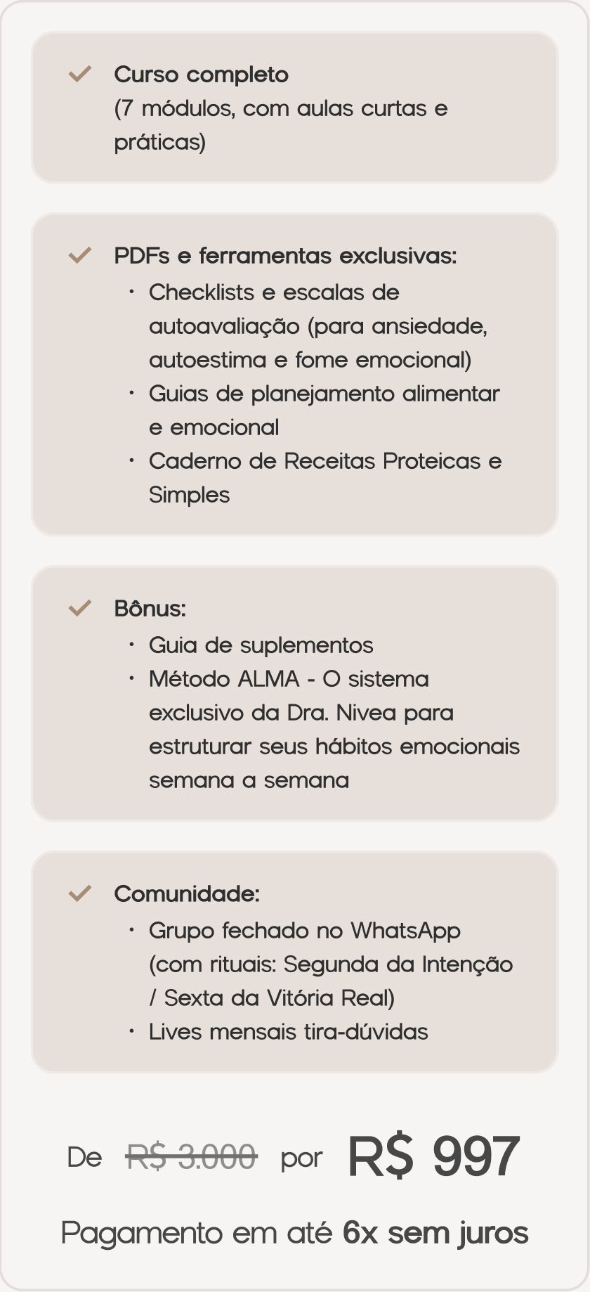 Bônus para a Turma Pioneiras da Clareza: Você pode parcelar o programa completo em até 6x sem juros no cartão. Uma forma de facilitar seu começo — com leveza, no seu tempo.