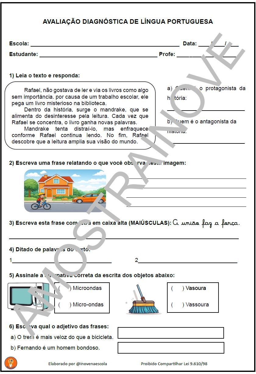 Língua Portuguesa - Avaliação Diagnóstica Fundamental 2