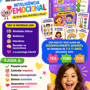 O Método Emoções em Ação é um material prático e interativo criado para desenvolver a inteligência emocional infantil de forma leve, envolvente e eficaz. Através de cards com perguntas e situações do dia a dia, a criança é estimulada a pensar, sentir e agir de maneira mais consciente, trabalhando habilidades essenciais como autoconhecimento, controle emocional, empatia, habilidades sociais e tomada de decisão. Baseado na neurociência e na psicologia comportamental.