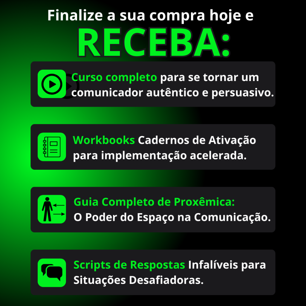 Quer saber por que algumas pessoas conseguem dominar qualquer conversa, mesmo sem dizer uma palavra? Nesta Masterclass exclusiva, vou te revelar os 3 sinais secretos da linguagem corporal que uso com meus mentorados de alto nível(MAESTRO) para criar conexão instantânea e influência silenciosa. São as mesmas técnicas que aplico em palestras para grandes empresas e que complementam perfeitamente as respostas inteligentes do seu ebook. Adicione agora e desbloqueie o poder da comunicação não-verbal!