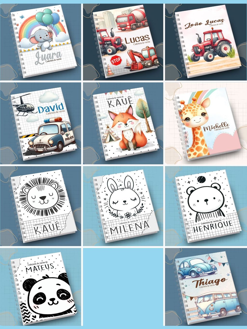 capas de agenda, cadernos e cadernetas