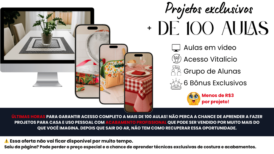 🚨 OFERTA ESPECIAL – APENAS AGORA! 🚨 Adicione o Combo Completo de Panos de Prato à sua compra e tenha acesso vitalício a mais de 170 aulas com modelos exclusivos que você pode começar a costurar ainda hoje! ✅ Mais de 120 modelos de panos de prato ✅ 9 bônus exclusivos incluídos ✅ Acabamentos perfeitos que valorizam suas peças ✅ Técnicas simples — mesmo para quem está começando 💥 Por um valor simbólico, transforme sua costura em renda extra e terapia! 👉 Sim, quero garantir meu acesso!