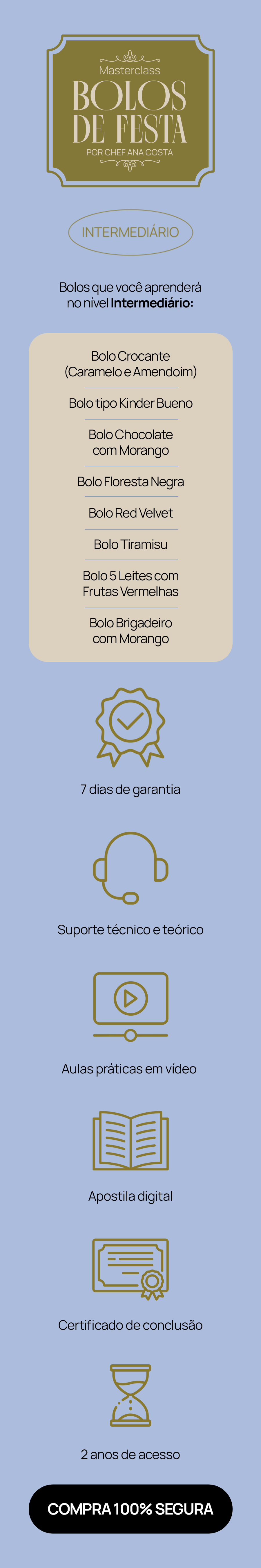 Imagine ter em mãos as 6 receitas mais pedidas do ano, aquelas que fizeram sucesso absoluto nas datas comemorativas e que seus clientes vão AMAR: ✅ Especial de Páscoa - 3 Mousses Irresistíveis (para vender ou presentear) ✅ Dia das Mães- Bolo de Ameixa com Coco & Bolo de Abacaxi com Doce de Leite(favorito) ✅ Dia dos Pais-Bolo de Leite em Pó com Morango(sucesso garantido) ✅ Especial de Natal - Brownie com Limão (diferente e delicioso) Por apenas 12x 9,68 *Essa oferta encerra ao fechar a página.