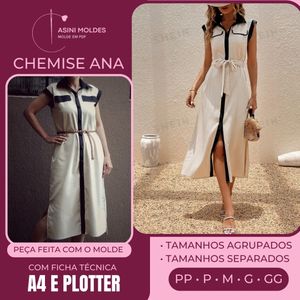 CHEMISE ANA - Molde em PDF [ MOLDES SEPARADOS POR TAMANHOS ]