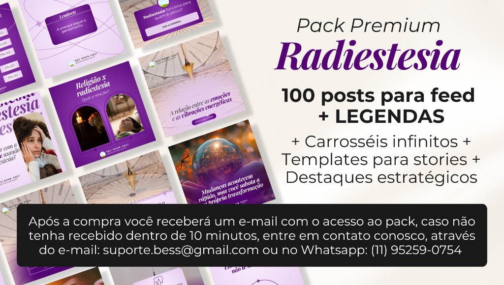 São + de 100 templates profissionais editáveis no Canva gratuito prontos para baixar + LEGENDAS prontas para copiar! Marque a caixa abaixo para acessar agora o Pack Premium Reiki, pois essa oferta com DESCONTO exclusivo está disponível somente para essa página!