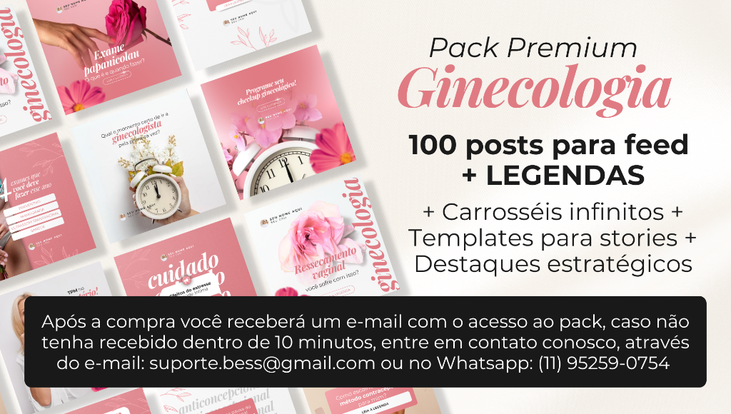 São + de 100 templates profissionais editáveis no Canva gratuito prontos para baixar + LEGENDAS prontas para copiar! Marque a caixa abaixo para acessar agora o Pack Premium Obstetrícia, pois essa oferta com DESCONTO exclusivo está disponível somente para essa página!