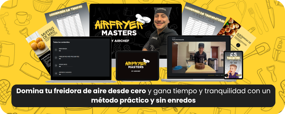 Estás por entrar a Airfryer Masters…¡Haz que tu experiencia sea completa desde el día 1 con la Guía de limpieza definitiva! Aprende a cuidar tu freidora sin dañarla, qué productos usar, cómo limpiarla rápido y qué errores evitar. 👉 Agrégala con un clic a un precio exclusivo